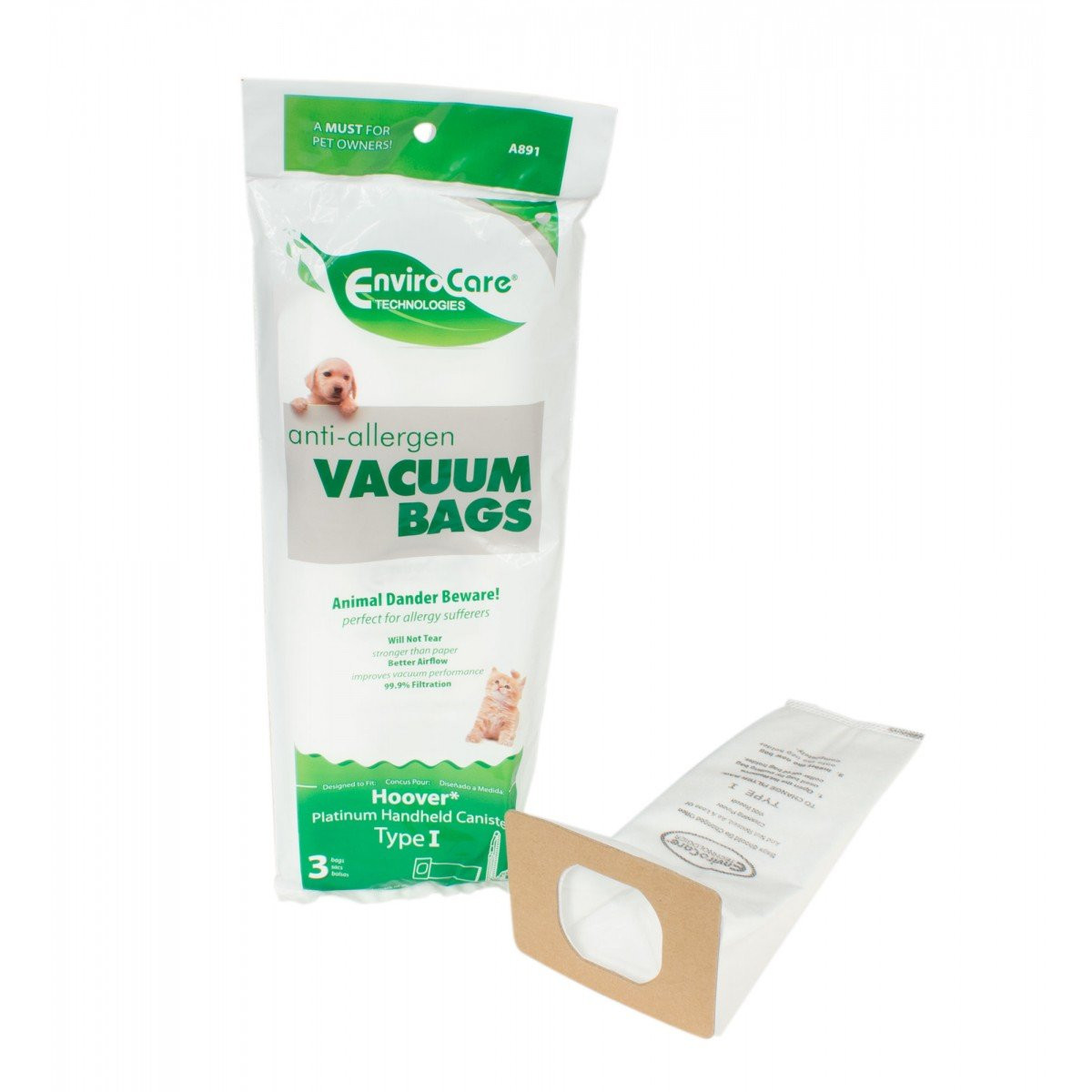 HEPA Microfilter Bag for Hoover Type I Vacuum - Pack of 3 Bags - Envirocare A891